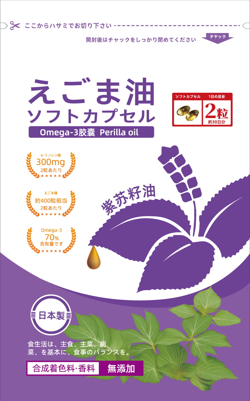 えごまオイル(国内製造)、ゼラチン/グリセリン、酸化防止剤(ビタミンE、ビタミンC)